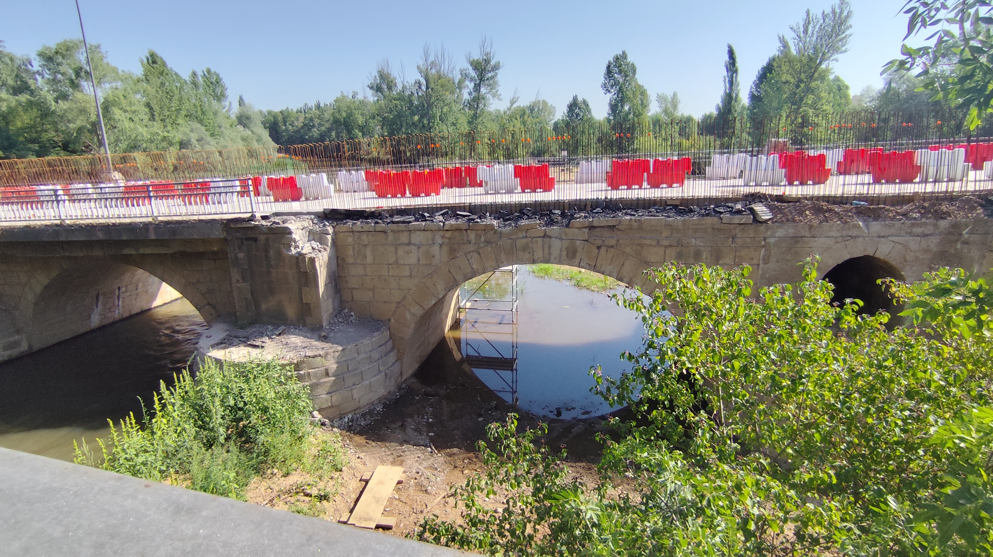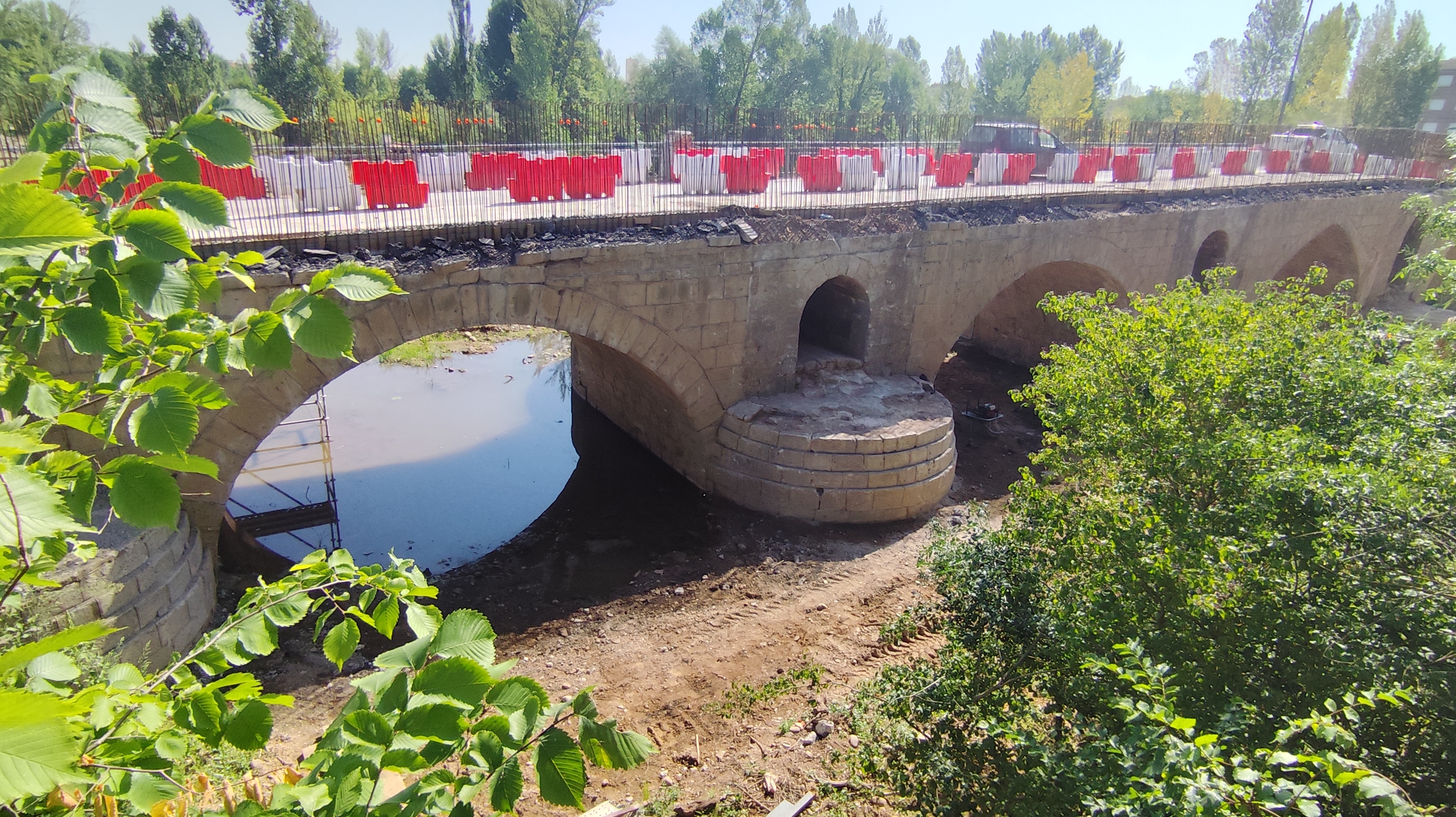 El PSOE destaca que la restauración del puente medieval de Almazán avanza con apoyo estatal y municipal, pero sin un euro de la Junta